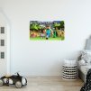 Textilná nálepka na stenu je vytlačená bez okrajov, to znamená, že jednotlivé prvky dizajnu sú orezané na hrane dizajnu bez bielych okrajov. Aj preto je samolepka vhodná aj na farebnú stenu.