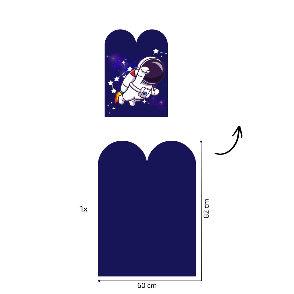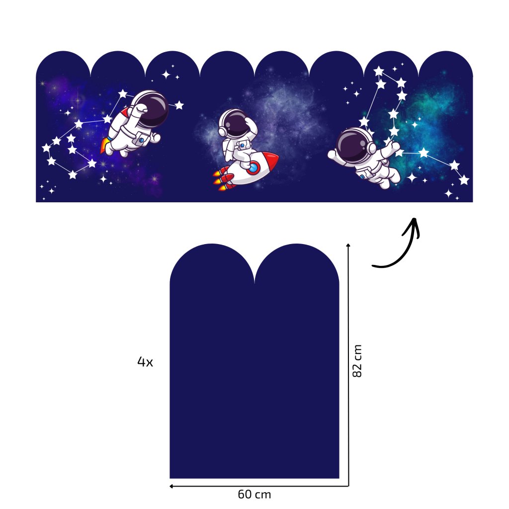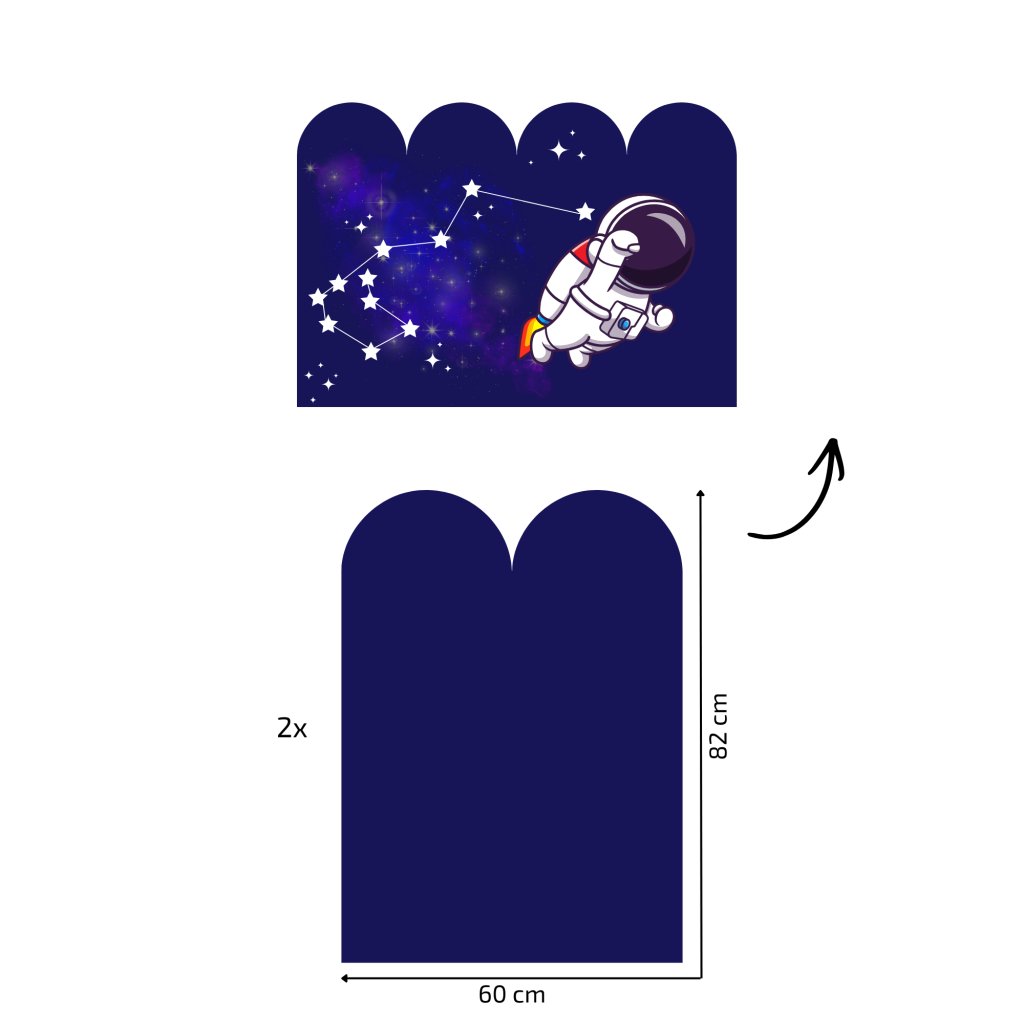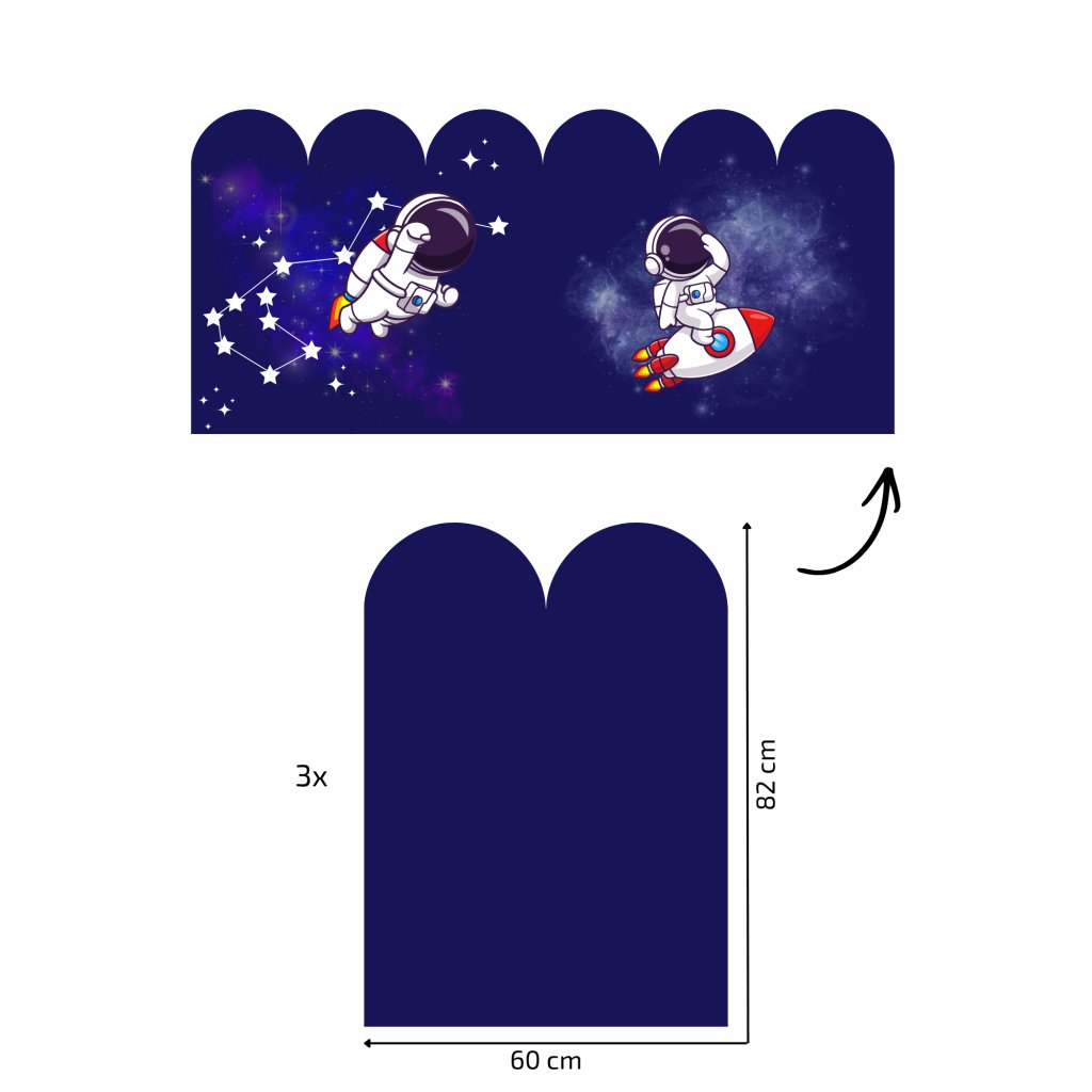 - Tapeta s oblúkmi – dizajn je prispôsobený šírke, nestane sa ti, že dostaneš oblúky, na ktorých bude pol astronauta. Šírka 1 oblúka je 30 cm, na hárku sú 2 oblúky.
