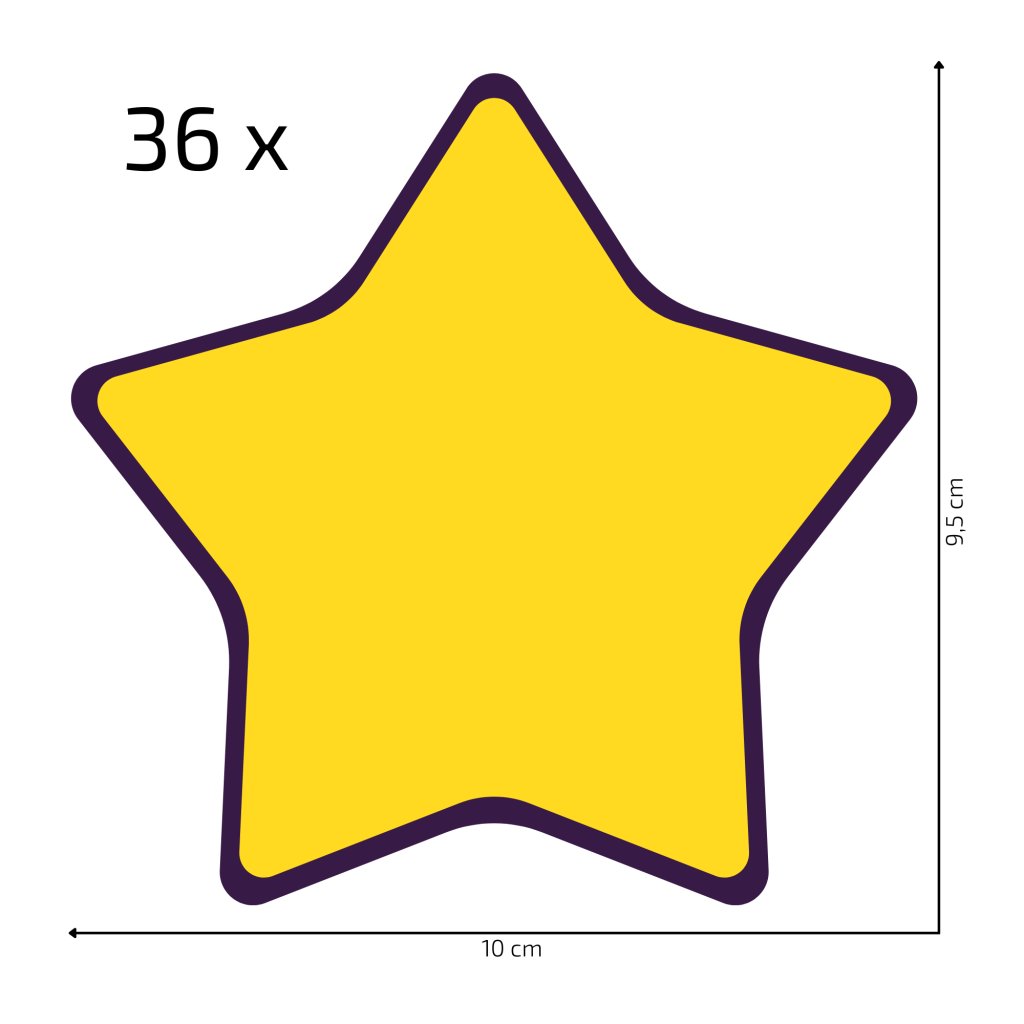- Minimalistické hviezdičky (36ks) sú na samostatnom hárku (60 × 60 cm) a lepíš ich jednotlivo, takže si ich rozmiestniš presne podľa izby.