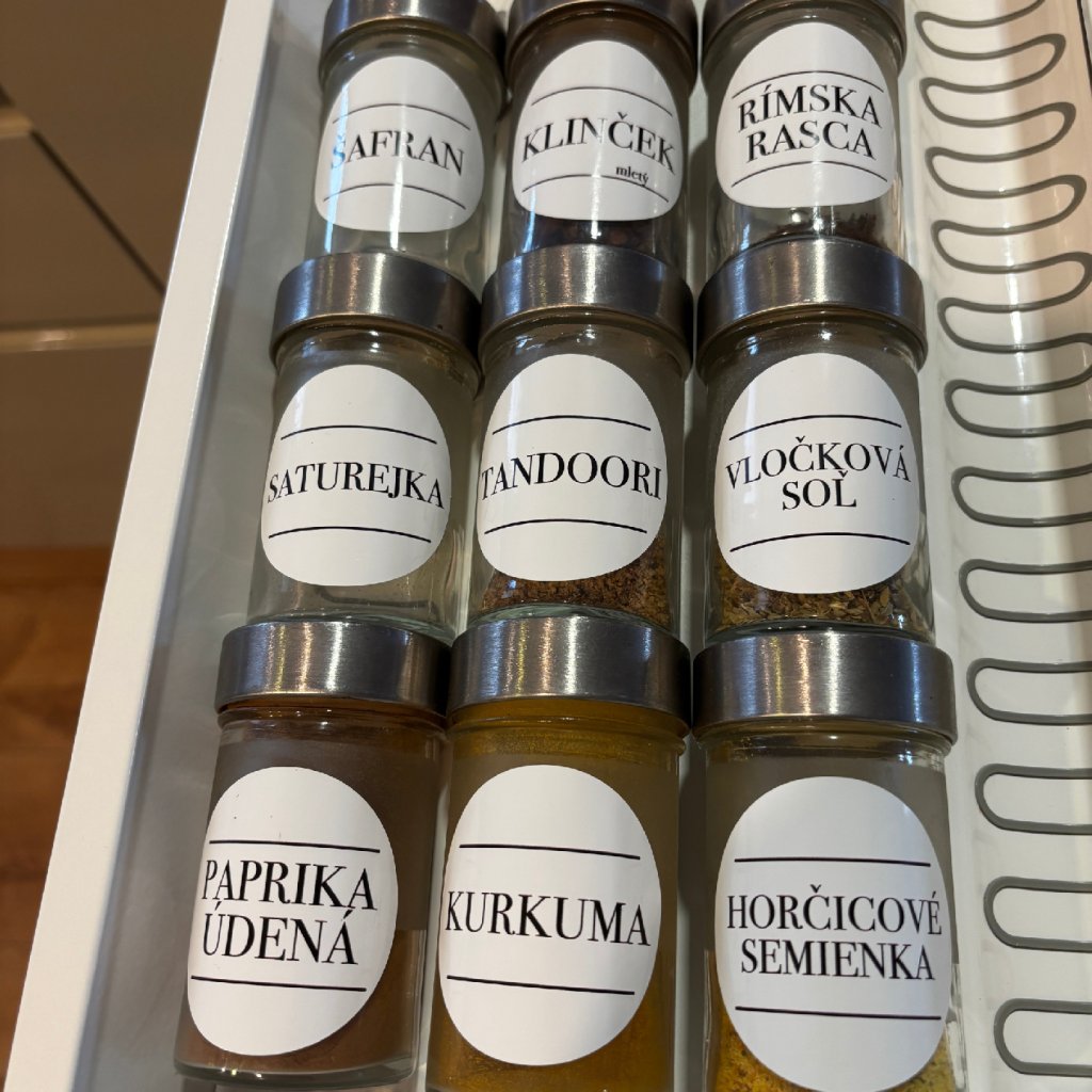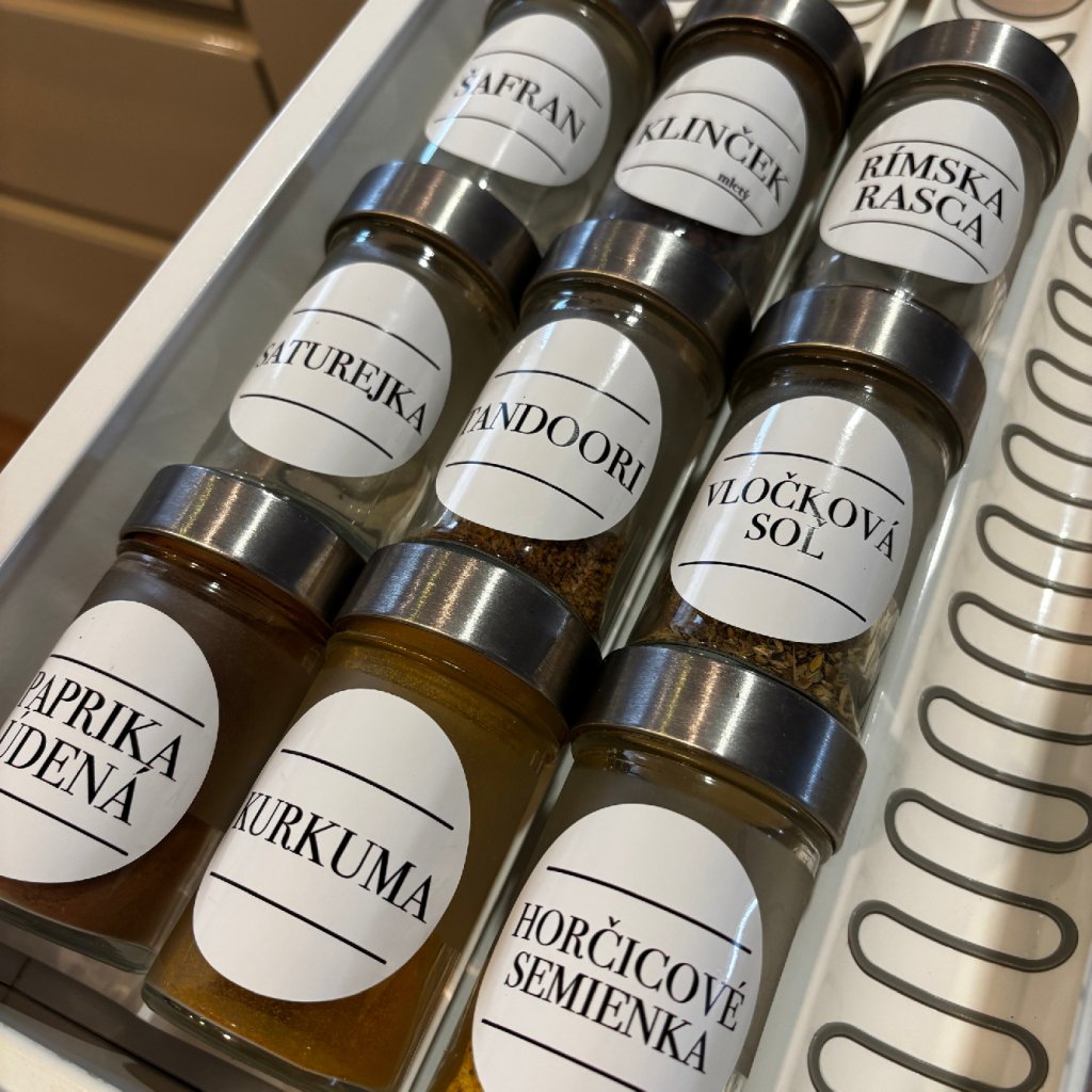 Aj keď máš rôzne druhy koreničiek, nálepky ich krásne zjednotia a premenia chaos na prehľadnú zostavu.