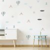 Samolepka sa skladá z 8 obláčikov v 2 dizajnoch, 8 Teepee v 2 dizajnoch, 4 teplovzdušných balónov, 4 stromov a 4 pňov. Každá samolepka sa lepí samostatne. Lepí sa ako obyčajná samolepka. Povrch nálepiek je matný a je vodou umývateľný.
