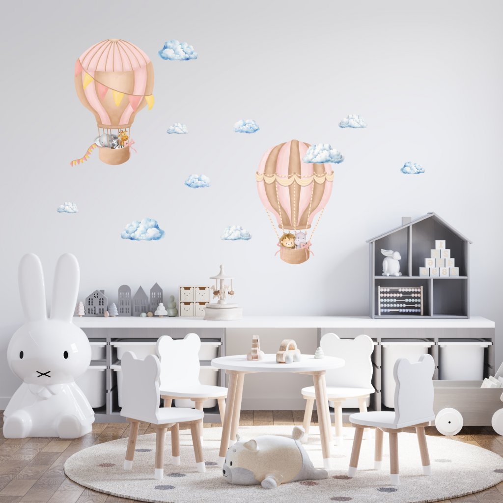 Každý balón nesie rozkošné zvieratká, čo vytvára príjemnú a kreatívnu atmosféru pre deti. Nechajte ich vytvoriť príbehy spojené s touto nálepkou.