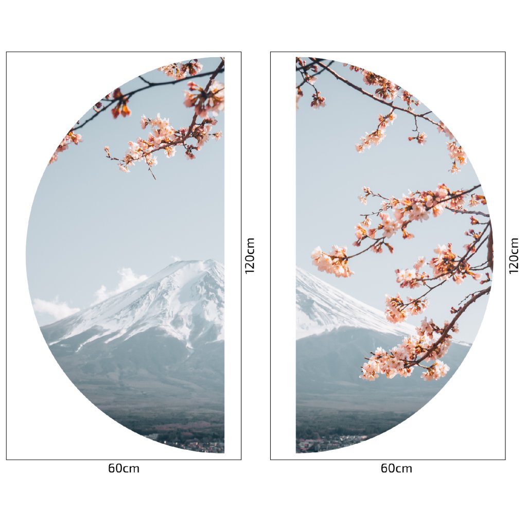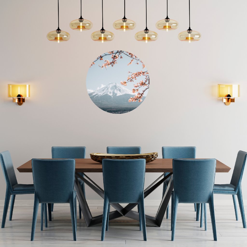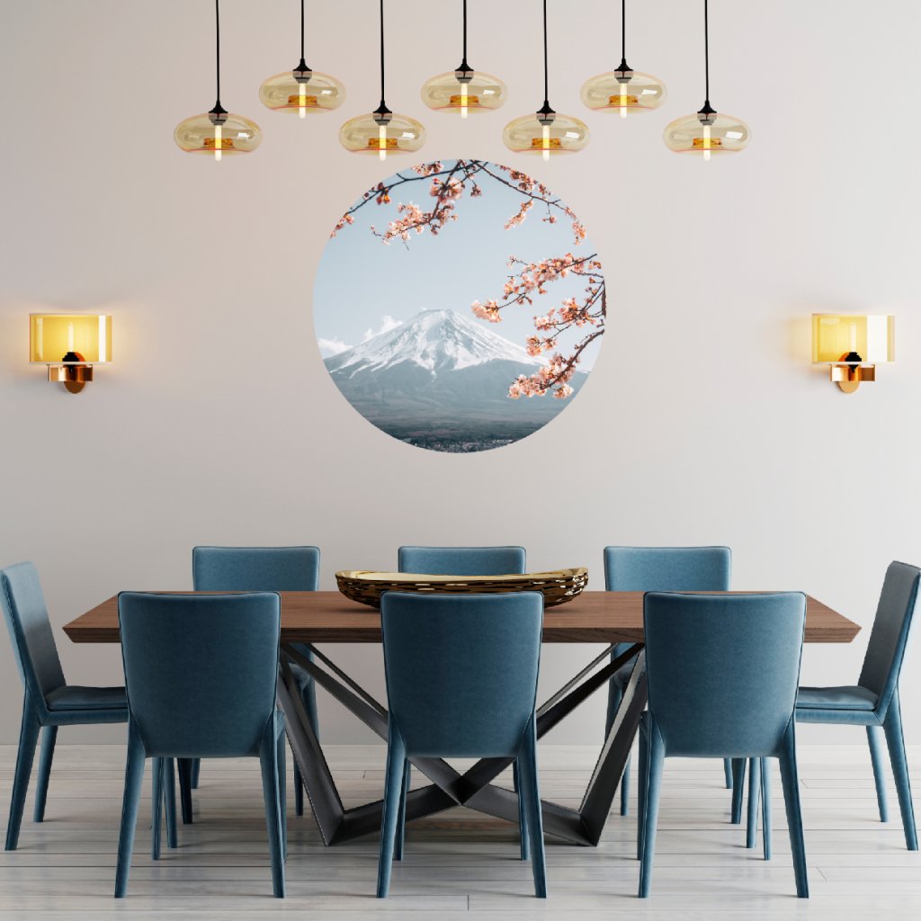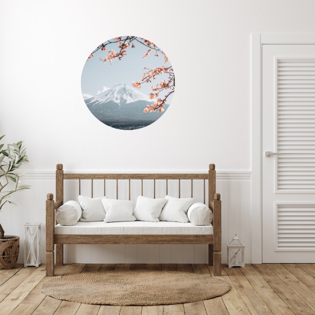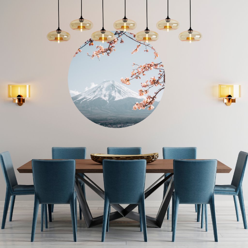 Dodaj svojmu interiéru nádych ďalekého východu s kruhovou nálepkou na stenu „Japonsko“. Výhľad na ikonickú zasneženú horu Fuji cez kvitnúce vetvičky sakury vytvára harmonickú scenériu, ktorá pôsobí ako moment meditácie priamo na tvojej stene. Jemné tóny a vyvážená kompozícia navodzujú pocit ticha a vnútornej pohody.