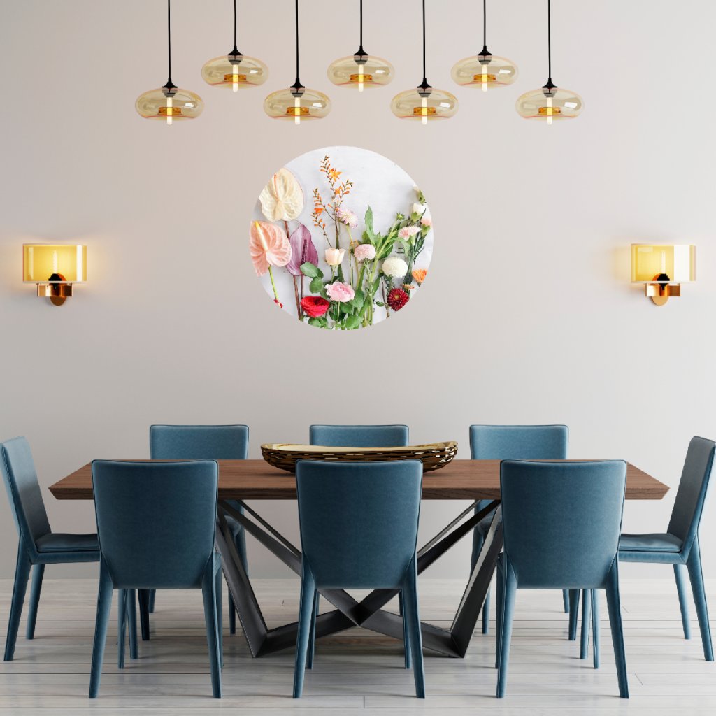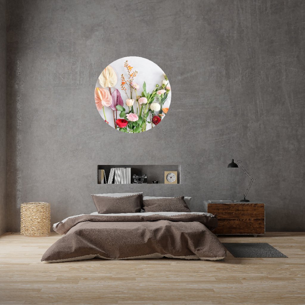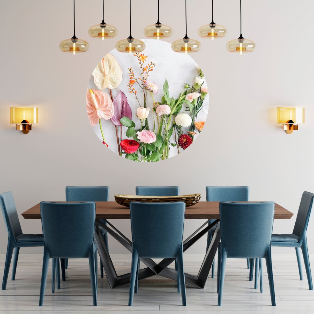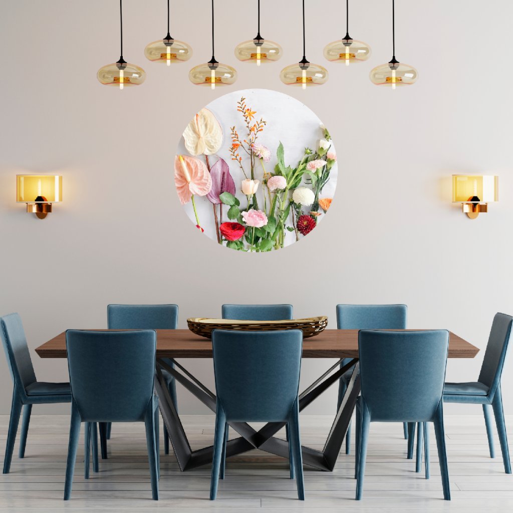 - Dizajn: Nadčasová kruhová nálepka s motívom lúčnych kvetov rozžiari tvoj interiér jemnosťou, farbou a prírodnou poéziou.