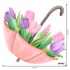 - Dizajn: Pôvabná akvarelová maľba dáždnika plného sviežich tulipánov dodáva domovu nádych jarnej sviežosti.