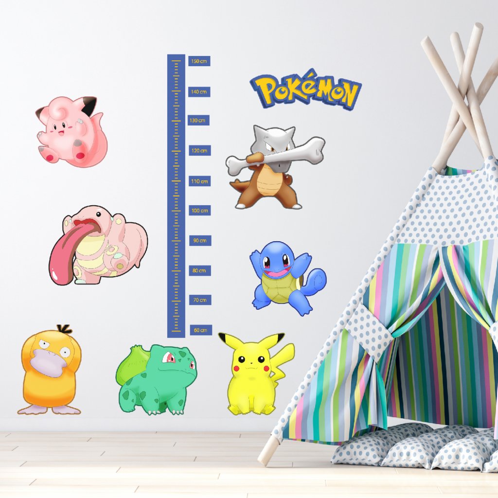 Textilná nálepka na stenu "Detský meter - Pokemón"