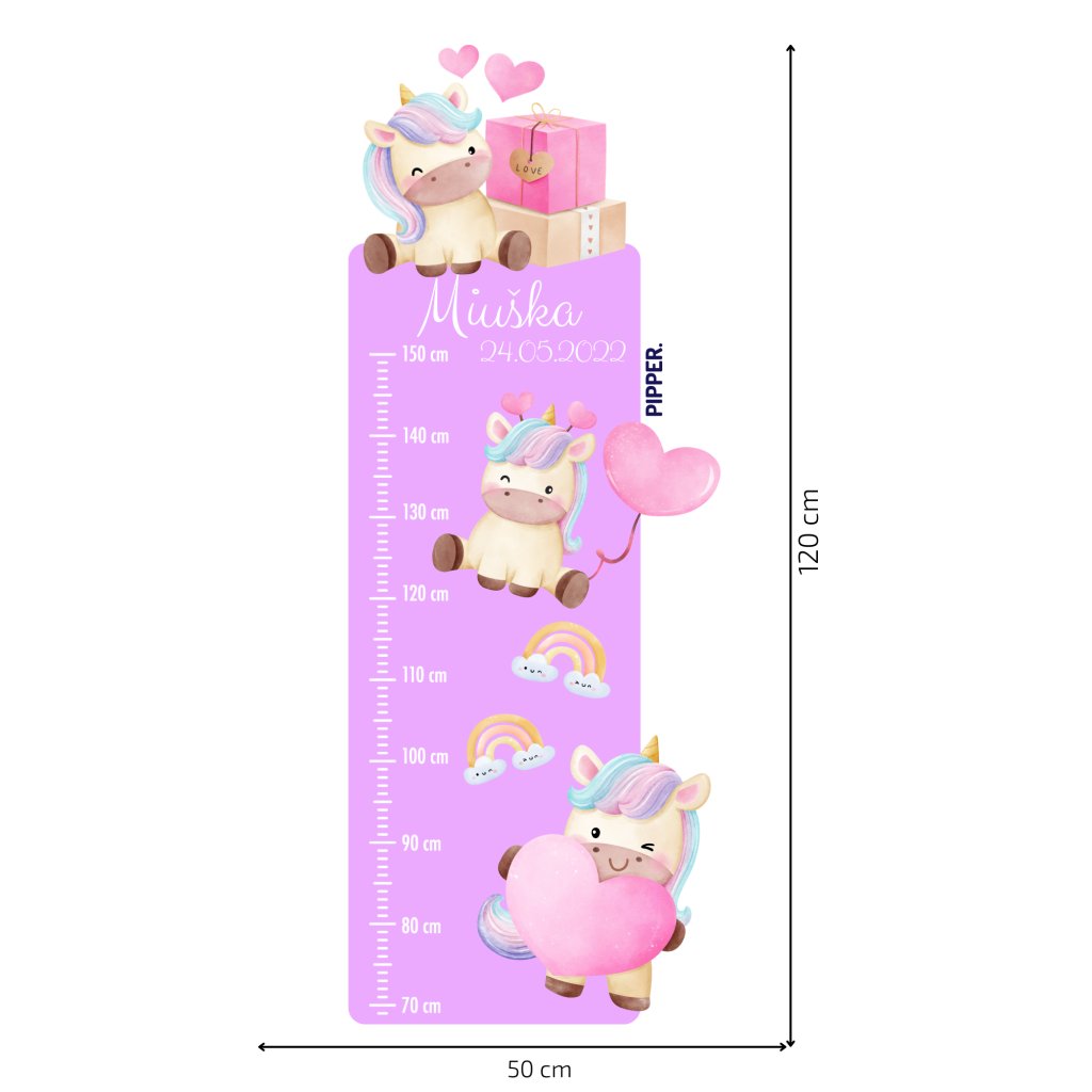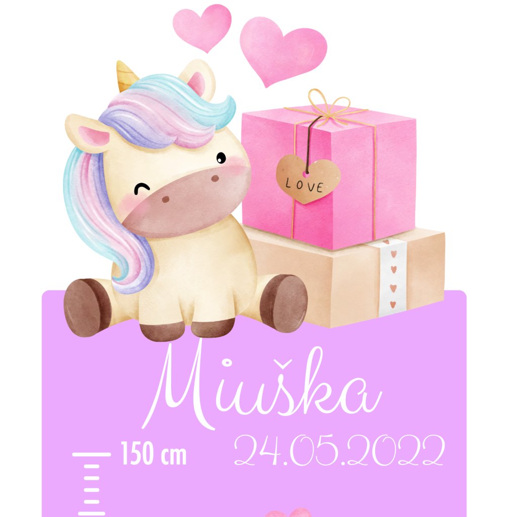 Detský meter „Jednorožce“ je plný lásky, srdiečok a dúh, ktoré rozžiaria každý priestor.🌈🦄 Vďaka personalizácii menom a dátumom narodenia sa z neho stane nielen praktický doplnok na meranie výšky (od 70 do 150 cm), ale aj milá spomienka na detské roky.