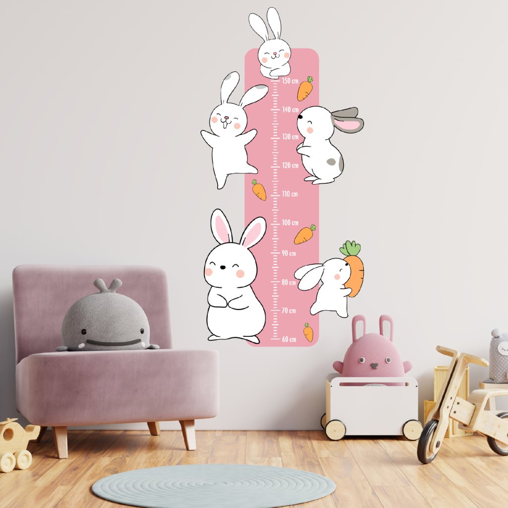 Pridaj hravý a farebný dotyk do detskej izby s našou nálepkou na stenu, detským metrom s roztomilými zajačikmi. Je to nielen skvelá dekorácia na stenu, ale aj praktický pomocník pri sledovaní rastu tvojich detí.