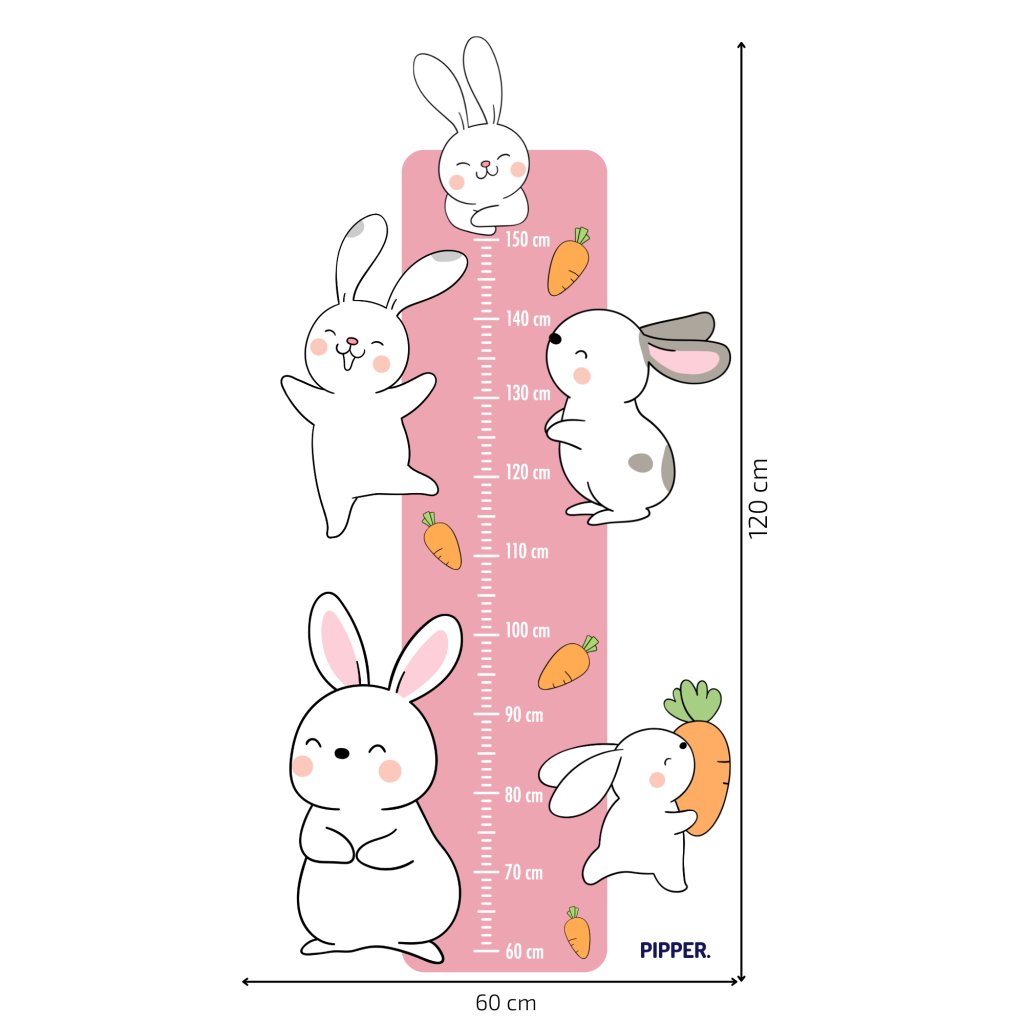 Pridaj hravý a farebný dotyk do detskej izby s našou nálepkou na stenu, detským metrom s roztomilými zajačikmi. Je to nielen skvelá dekorácia na stenu, ale aj praktický pomocník pri sledovaní rastu tvojich detí.
