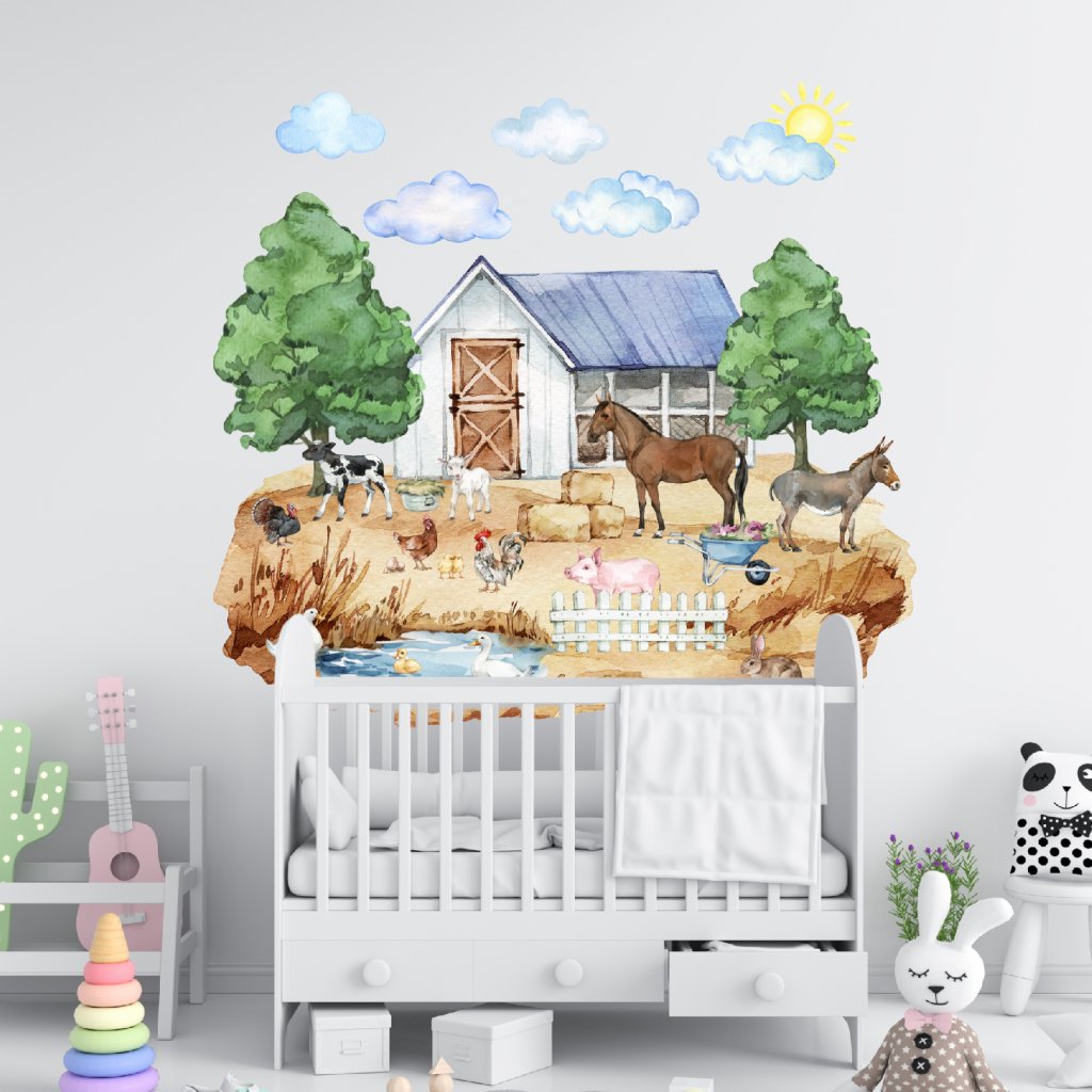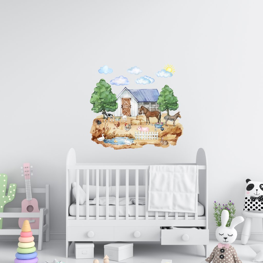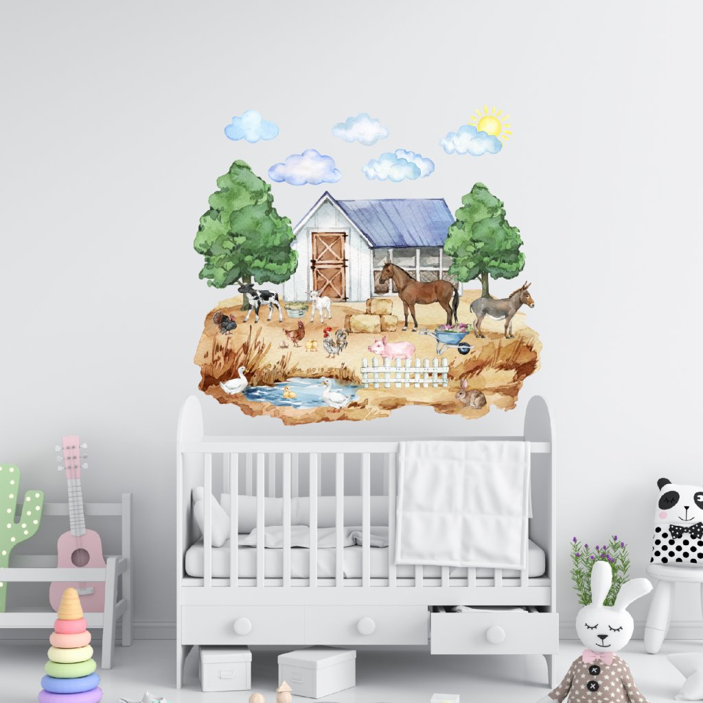 Premeň detskú izbu na živý vidiek, kde sa stretávajú kone, prasiatko, somárik, sliepky, kačky, zajko a ďalšie zvieratká.
