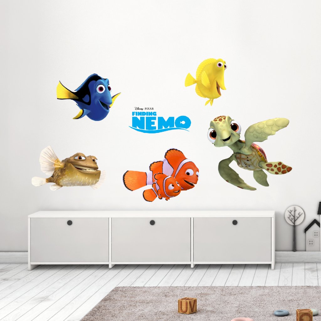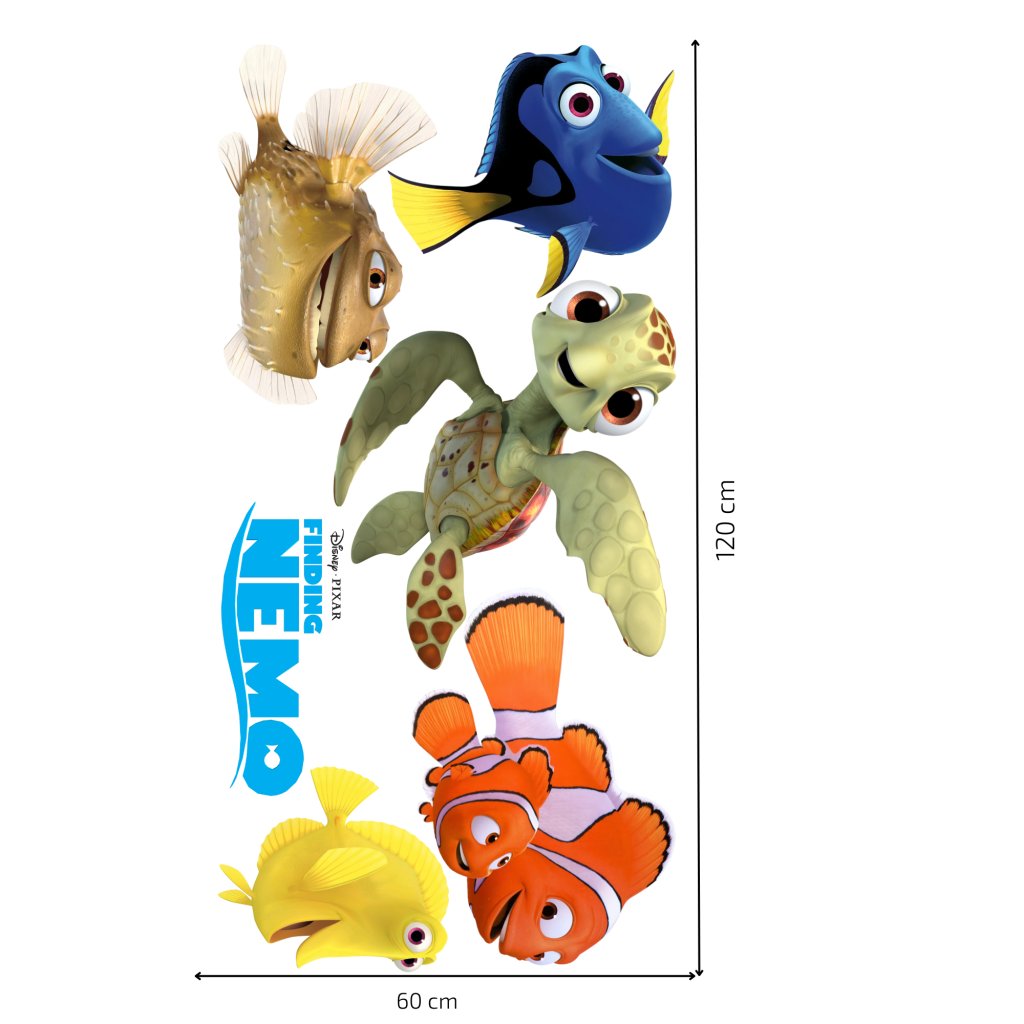 Premeň detskú izbu na farebný podmorský svet plný priateľstva, odvahy a zábavy vďaka textilnej nálepke s obľúbenými postavičkami z rozprávky Hľadá sa Nemo. Nemo, Dory, Marlin, Squirt a ich kamaráti ožijú priamo na stene a prinesú radosť každému malému fanúšikovi tejto animovanej klasiky.